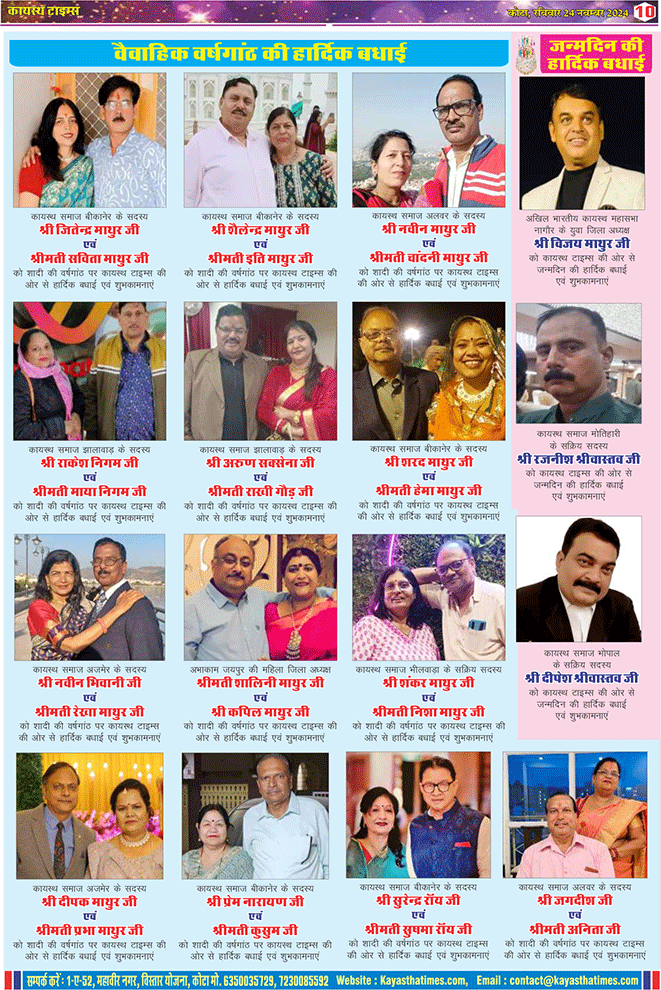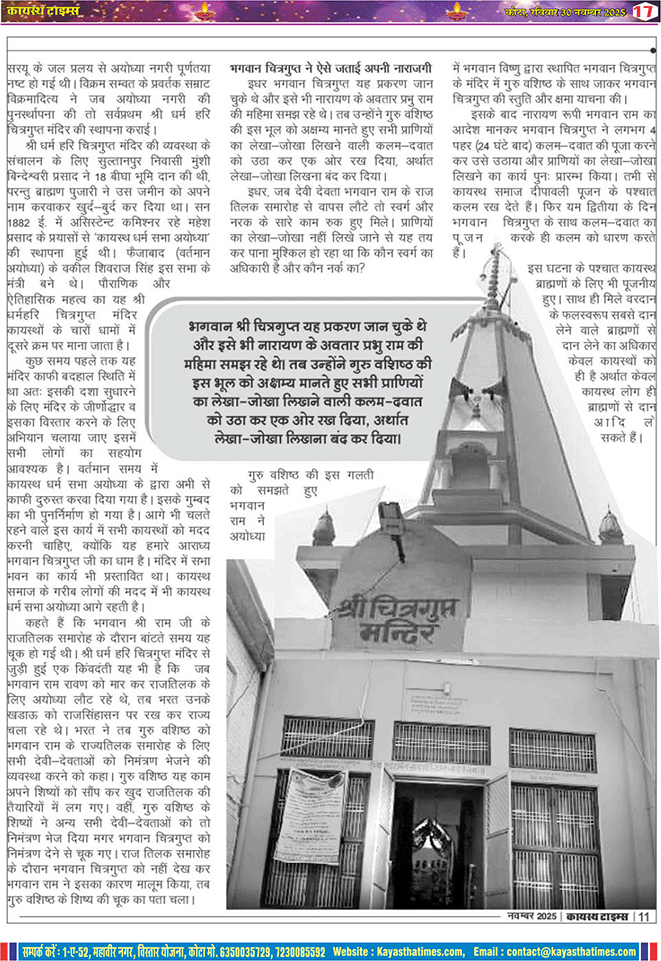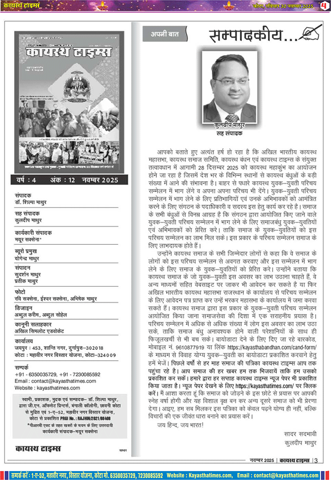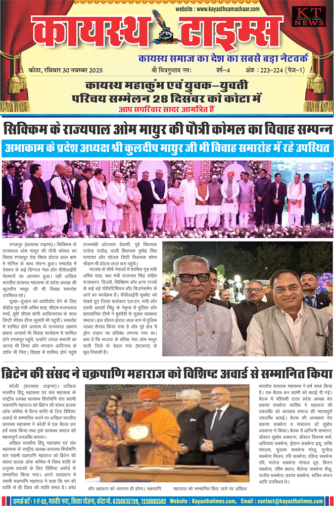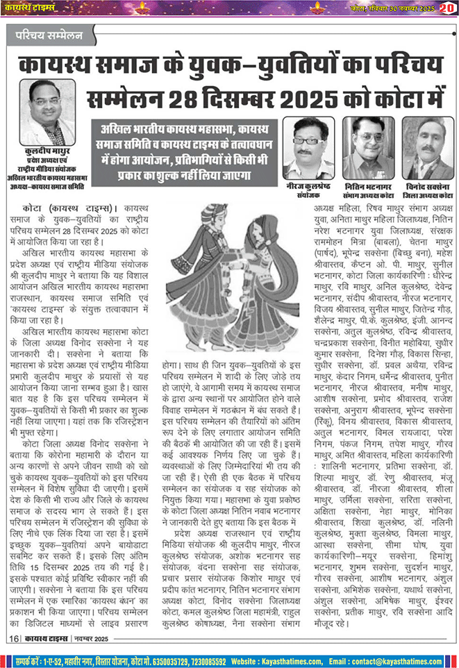 कायस्थ समाज का न्यूज पेपर कायस्थ टाईम्स का 214 वा अंक- यह न्यूज पेपर हर 10, 20 व...