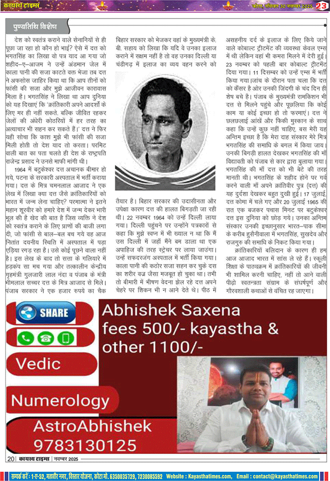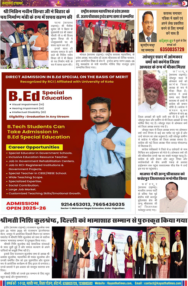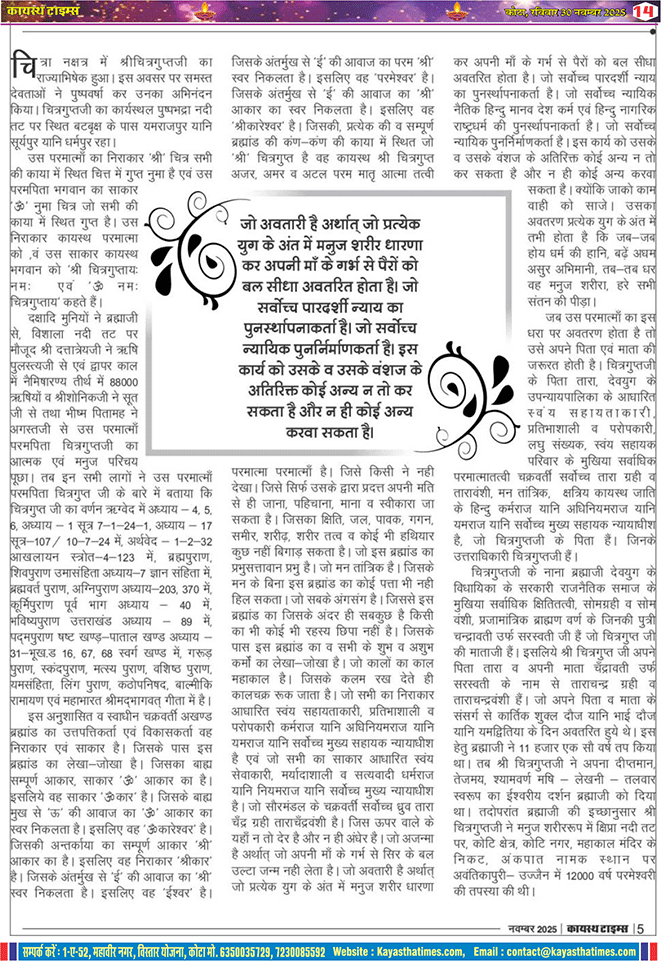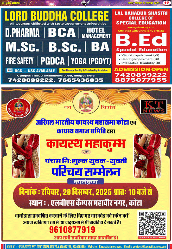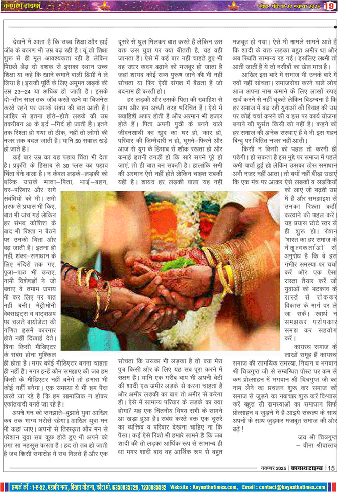 कायस्थ समाज का न्यूज पेपर कायस्थ टाईम्स का 214 वा अंक- यह न्यूज पेपर हर 10, 20 व...
