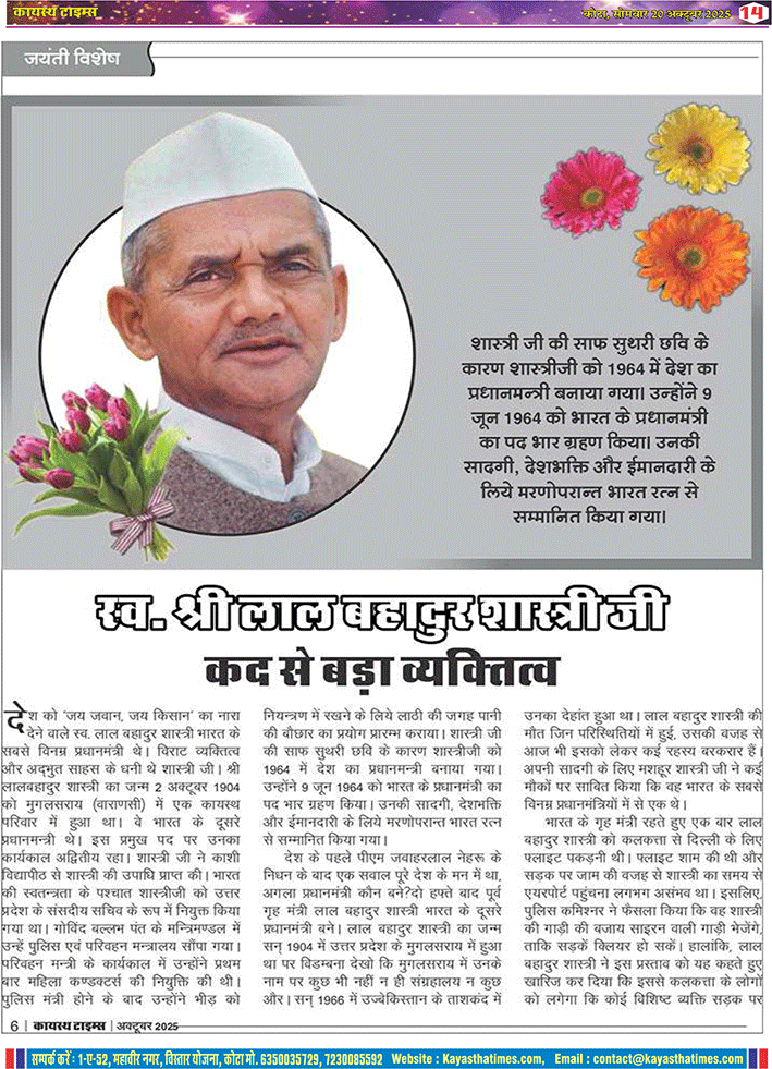 कायस्थ टाइम्स कायस्थ समाज का समाचार पत्र- कायस्थ टाइम्स का 222 वां अंक यहाँ पढ़ें कायस्थ समाज का समाचार पत्र *“कायस्थ टाइम्स”* का 222 वां अंक प्रकाशित हो चुका है। यह समाचार पत्र हर माह की 10, 20 और 30 तारीख को नियमित रूप से प्रकाशित होता है।